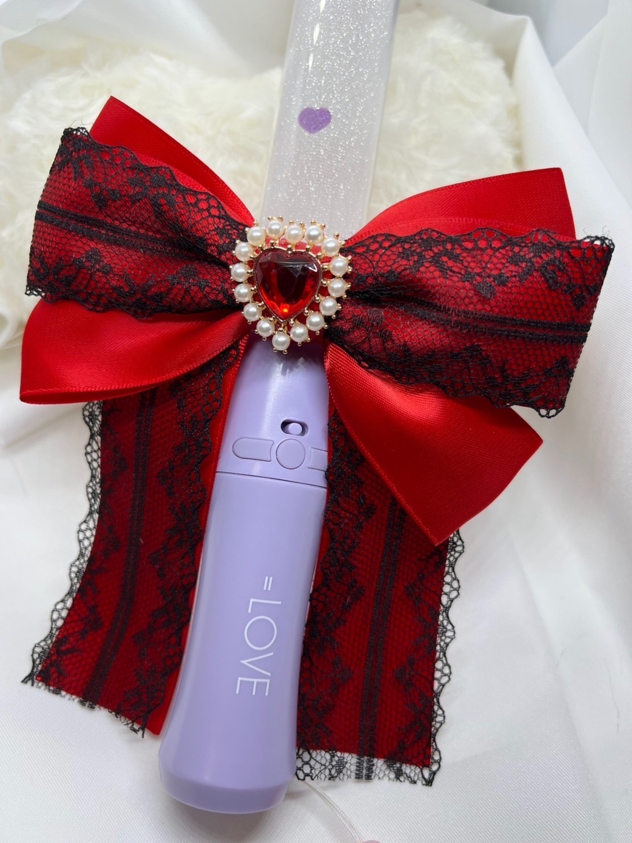 個性的なデザインのリボンで、あなたの推し活をさらに華やかに演出します。シンプルながらも目を引くハートのビジューとリボンが、イベントでのヘアスタイルや小物を一段と可愛く彩ります。